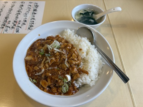 【萬新菜館 関内店】 2度目まして! 前回と同じく『マーボー豆腐丼』750円をチョイス。激安! 辛すぎなくてお気に入り。ごはんたっぷりなの···